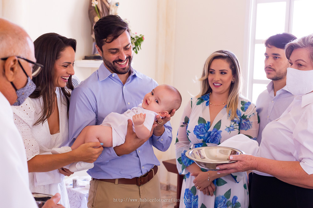 Os pais foram os primeiros a chegar, o Arthur estava pleno, parecia que sentia que se tratava de um momentos muito especial para a vida dele, os padrinhos de batizado, a Ana e o Leonardo muito felizes para esta benção que lhes foram confiados.
